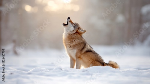 Lone wolf howling in snow-covered forest