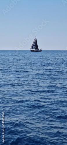 loneliness, depression, alone, sea, horizon, blue, blue water, water, ocean, boat, sail, sailboat, sky, ship, summer, travel, wave, wind, nature, nautical, seascape