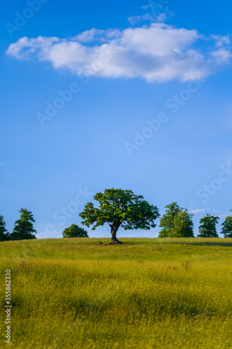 sky, landscape, grass, field, nature, tree, meadow, green, summer, cloud, blue, rural, cloud, spring, forest, countryside, tree, horizon, beautiful, pasture, sunny, day, cloudscape, land