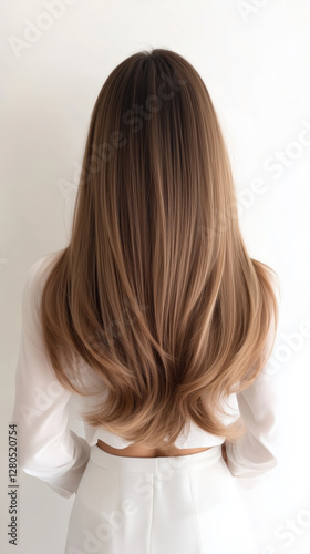 long, hair, brown, gold, coiffure, woman, back, smooth, shiny, healthy, fashion, beauty, care, straight, soft, wave, elegant, modern, trendy, light, dark, texture, salon, casual attire, white, outfit, minimalistic, feminine, chic, glossy, flowing, length, inspiration, trend, appearance