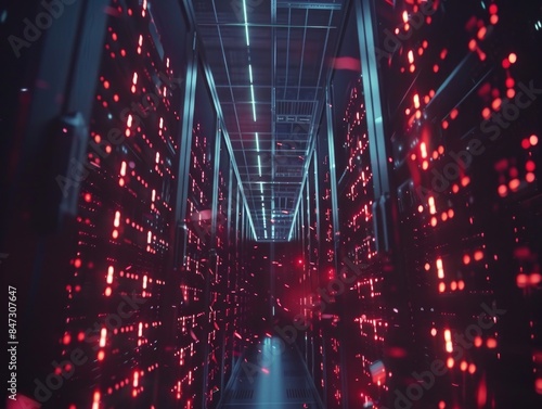 Long corridor with rows of red lights, great for ambiance or mood settings