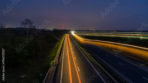 rear lamp, street light, lane, streak, headlamp, expressway, commute, suburban, expressway, logistic, mobility, moody, driving, illumination, infrastructure, asphalt, copy space, highway, twilight, perspective, traffic, dusk, fast, speed, cloudy, safety, motion, connection, journey, evening, night, tree, countryside, transportation, road, rural, field, urban, technology, modern, sky, landscape