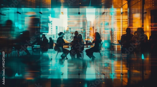 Long exposure shot. Exploring Modern Workspace Interaction amidst the Urban Environment in todays world