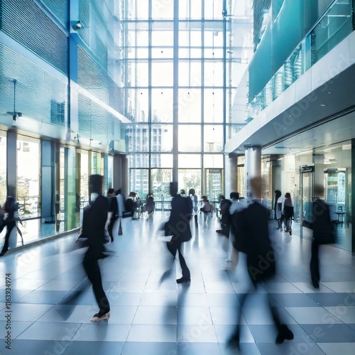 people, business, hall, crowd, city, interior, office, building, corridor, center, motion, travel, urban, architecture, walking, glasses, tied-up