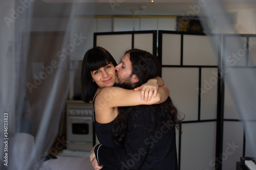 couple, woman, love, young, people, happy, portrait, smiling, beautiful, 2, romance, smile, family, human relationships, beauty, happiness, hug, kiss, together, home, cheerful, togetherness, white, boyfriend, embracing