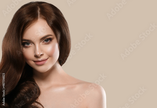 long, hair, curly, brunette, woman, beautiful, beauty, bright, brown, care, clean, color, cosmetic, cosmetics, eyes, face, fashion, female, girl, glamour, glossy, haircare, hairstyle, happy, health,