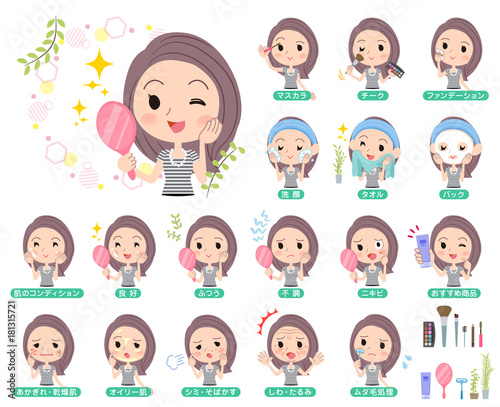 woman, young, college students, fashion, casual attire, beauty, fair skin, beautiful face, skincare, face, make-up, mascara, teak, foundation, towel, face mask, pimple, recommendation, introduction, product, advertising, word of mouth, dry skin, stain, freckle, wrinkle, ageing, shaving, trouble, smile, upper body, character, variation, simple, pretty, flat, vector, deformation