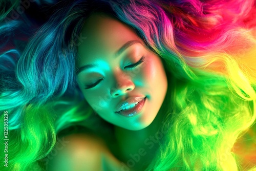 Long haircut - highlighted hair. Lovely happy mixed-race girl - for ads, poster and online marketing use. Commercial digital ads pattern. Colored hair beauty. African american beauty styles.