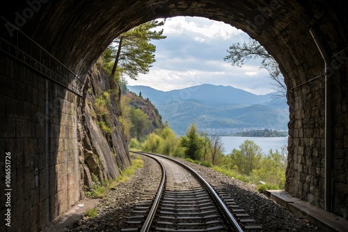 Long narrow railroad tunnel with scenic views, scenery, passage, landscape