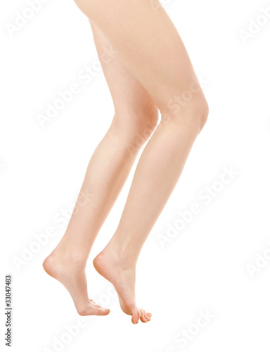 Long pretty woman legs isolated on white background