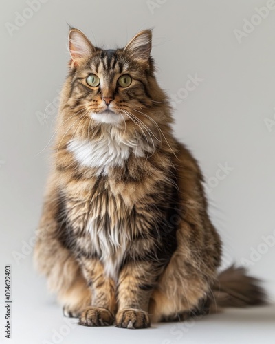 siberian, cat, long, haired, fluffy, felino, pure, white, elegant, sitting, beautiful, purebred, domestic, pet, animal, fur, adorable, cute, graceful, regal, whisker, paw, relaxation, calm, domesticated, cat, tail, independent, playful, soft, silky, luxurious, breed, friendly, sociable, intelligent, coat, posing, portrait, studio, photo, isolated, white background