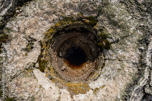 circle, deep, lichen, looking down, national park, nature, rock, round, steam, summer, volcano, water, wilderness, wyoming, yellowstone national park, depth, detail, feature, formation, geologic, geothermal, heat, hot, inactive, steaming, ventilated, volcanic, yellowstone