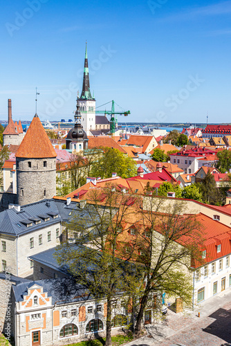 Looking out from the Upper Town over the rooves of the old town of Tallinn the capital city of Estonia