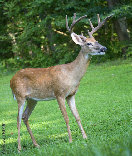 white tail, cervid, white tail, animal, wild animal, mammal, wildlife, buck, male, antler, velvet, grass, green, summer, brown, ear, eye, hide, fur, leg, hoof, tree, forest, wood