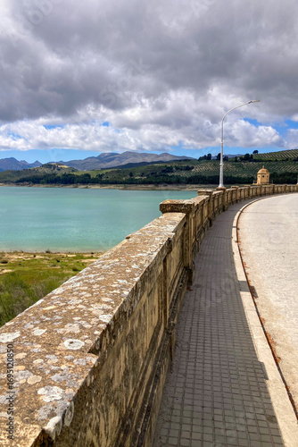 reservoir, granada, spain, water, lake, nature, landscape, mountain, forest, pine, sky, dam, travel, environment, peaceful, scenic, blue, cloud, hill, vale, shore, andalusia, sunlight, view, natural, destination, hydrology, tour tourism, terrain, calm, rural, calmness, countryside, geography, body, storage, serenity, adventure