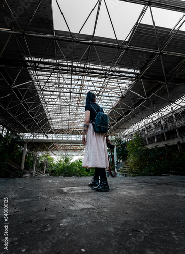 Lostplace Stadion Ruine Frau Mädchen läuft herum