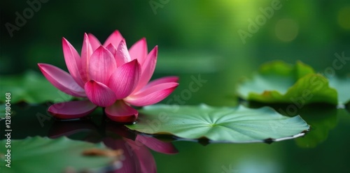 Lotus flower blooms in murky swamp water with green leaf, serene scene, greenleaf, swamp