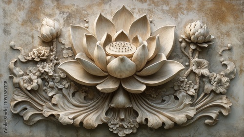 lotus, carving, art, floral, sculpture, texture, intricate, detail, craftsmanship, traditional, ornate, design, decorative, elegance, woodwork, relief, pattern, hand-made, historical, artistic, nature, botanical, flower petals, bloom, lotus flower, ornamental, cultural, heritage, three-dimensional, bas-relief, carved, creative, artisan, zen, harmony, calmness, fine art, aesthetic, craft, floral pattern