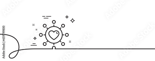 Love dating line icon. Continuous one line with curl. Relationships network sign. Valentines day or Heart symbol. Dating network single outline ribbon. Loop curve pattern. Vector