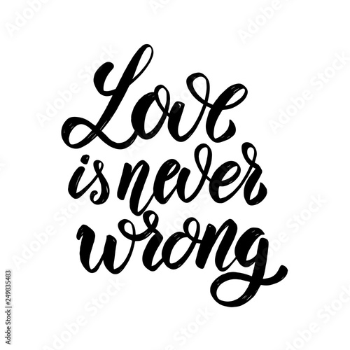 Love is never wrong. Hand drawn lettering phrase. Design element for poster, greeting card, banner. Vector illustration