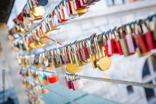 Love locks on a bridge in Europe. Ljubljana , Slovenia