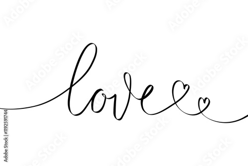 Love word one continuous line. Minimalist romantic linear lettering for valentines day greeting card, wedding invitation tattoo design. Vector illustration