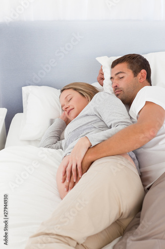 Lovely future parents sleeping in the bedroom