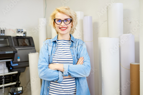 printing, office, woman, operator, confident, work, female, business, creativity, professional, workspace, positive, crossed, arm, folded, interior, smiling, cheerful, friendly, style, paper, service, casual attire, corporate, job, blond, goggles, honed, young, occupation, project, pretty, lovely, beautiful, attractive, charming, horizontal, indoor
