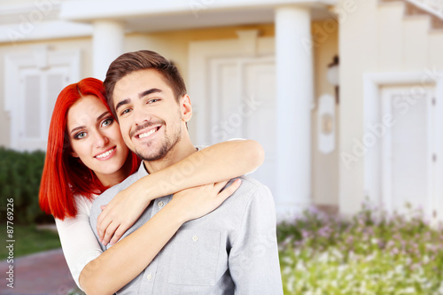 Loving couple near their house