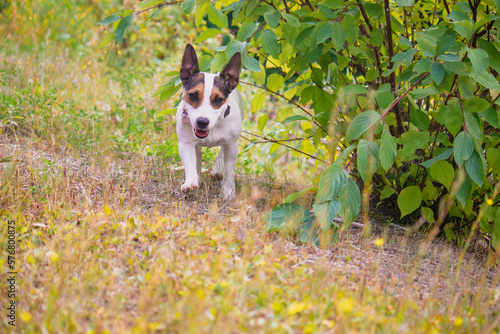dog, running, outdoors, pet, animal, white, grass, cute, puppy, terrier, canino, small, nature, energetic, outside, forest, mammal, spring, green, isolated, fun, adorable, copy space, young, small dog, jack russel terrier, breed, fur, brown, black, jack