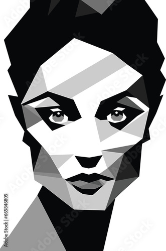 Low Polygon Black White Lady Face Isolated on white background