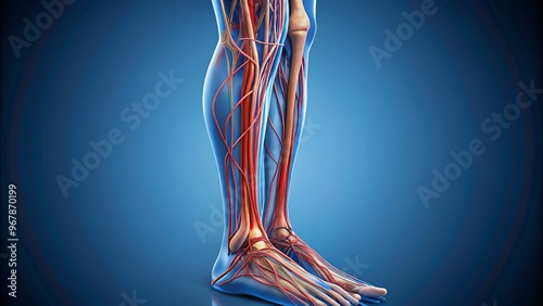 Lower leg arteries and veins anatomical illustration 3d rendered soft color