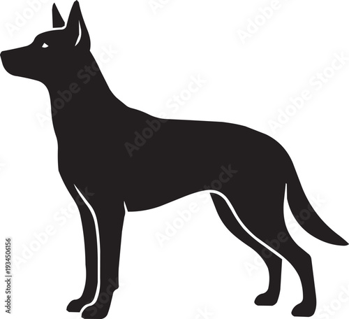 Loyal German Shepherd Dog Silhouette Standing Alert and Vigilant in Profile Vector Art