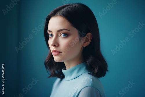 Luminous Depths: Beautiful Woman with Dark Hair and Clear, Captivating Eyes