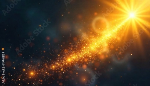 Luminous golden dust motes swirl in a beam of celestial light, representing divine gold emanating from a heavenly source Perfect for religious, fantasy, or spiritual themes , beam, mystical, gold