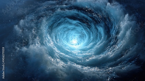 Luminous Oceanic Vortex, a mesmerizing swirl of light and water, featuring a radiant core and intricate blue textures, merging elements of fantasy and science fiction.