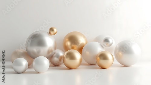 Luminous Spheres Harmony Gentle Arrangement of Golden and Silvery Shiny Orbs on Neutral Stage