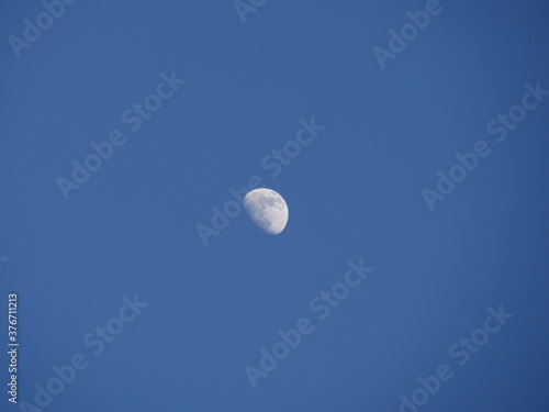 moon, heaven, blue, space, night, nature, daytime, astronomy, complete, cloud, planet, lunar, light, dark, white, moonlight, evening, satellite, orbit, crater, cellblock, half, zoom, closeup, star, phase, sun, evening
