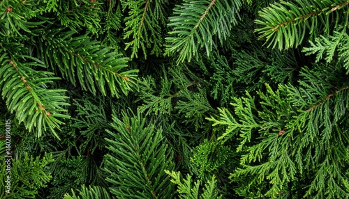 Lush Green Assortment of Evergreen Branches and Needles in Natural Light