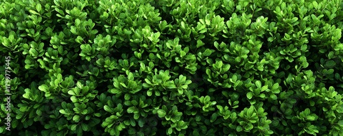Lush green boxwood hedge densely packed with small leaves in a full frame view, concept for garden design, landscape architecture and ornamental shrubbery projects