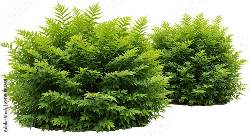 Lush Green Bushes Isolated on White Background