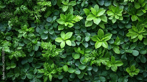 Lush green foliage creating a vibrant and textured natural carpet in a warm outdoor setting