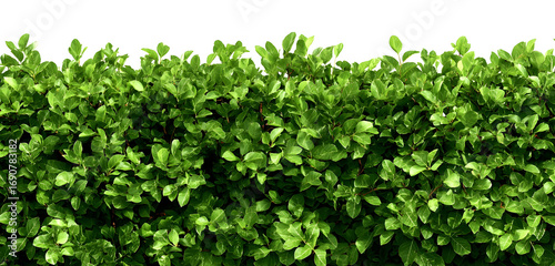 Lush green hedge with vibrant leaves creates a natural privacy screen, perfect for landscaping projects, garden designs, and adding a touch of serenity to any outdoor space with vibrant color