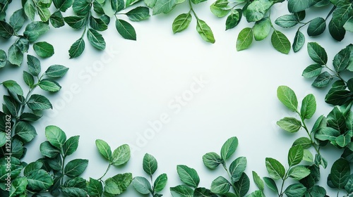 Lush Green Leaves Frame on Light Background for Nature Themes
