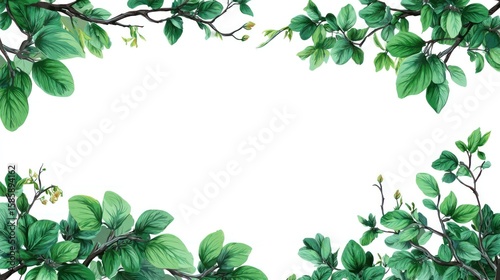leaf, branch, green, nature, frame, border, botanical, spring, summer, foliage, vibrant, plant, lush, fresh, growth, detail, floral, organic, pattern, background, design, texture, illustration, vector, art, garden, beauty, environment, eco, decoration, leafy, plant, natural, springtime
