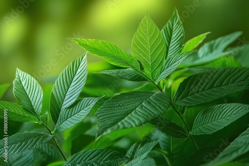 Lush green leaves with visible veins nature close-up outdoor garden environment macro photography perspective