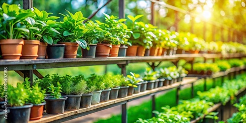 greenhouse, potted plants, plant, agriculture, environmentally friendly, farming, botany, gardening, horticulture, sustainable, nature, growth, green, leaf, organic, environment, ecology, healthy, fresh, spring, summer, banner, background, texture, design, template, education, learning, agricultural, rural, countryside, cultivation, harvest, flora, vegetable, herb, flower, dirtied, pot, shelf, bokeh, closeup, macro, image, photo, plant