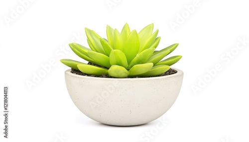 Lush green succulent plant in a minimalist white pot, showcasing vibrant leaves against a clean backdrop