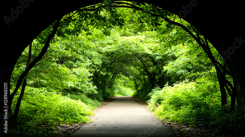 path, tunnel, tree, green, leaf, nature, forest, paseo, summer, daylight, bright, lush, foliage, scenic, tranquil, peaceful, serene, calm, relaxed, journey, travel, adventure, discovery, mystery, magical, enchanted, wonder, awe, escape, hidden, secret, paradise, park, garden, landscaping, arbour, archway, canopy, shade, light, shadow, perspective, depth