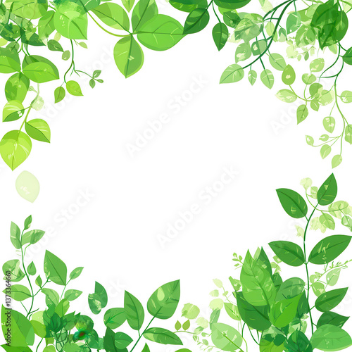 Lush Greenery Frame: Vibrant green leaves and foliage delicately frame an open space, ideal for design or text. A visual metaphor of natural beauty.